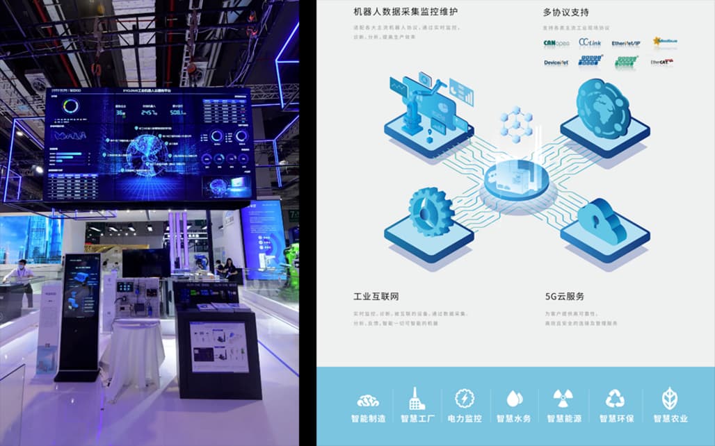 51CLOUD以数据采集为基础,可与国内外主流机器人及生产设备数据交互。比如,51CLOUD自主研发的All-IN-ONE采集板卡,网关集网络通信、 协议转换、规则引擎、数据存储等功能于一体,与平台共同实现工业物料网的云管端一体化解决方案,可直接与主流工业机器人、PLC、工业控制器 及PC连接,实现组网在线监控。于本次工博会最新亮相的旗舰版ALL-IN-ONE板卡全面支持5G,具有模块设计、自有组合、边缘计算和数据清洗、 远程监控和下载、配置极简可快速安装、安全可靠等特性,支持更多工业协议,可连接更多不同型号的机器人。